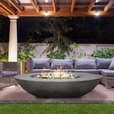 Ovale 60" Fire Bowl in Pewter finish on a modern deck