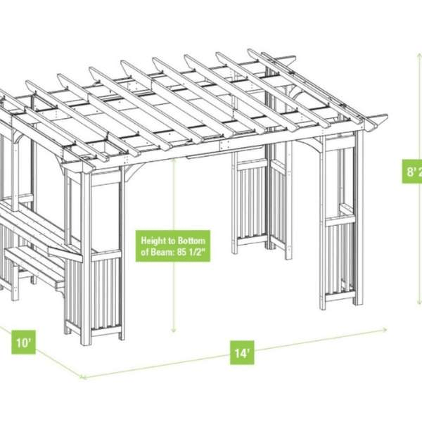 The Yardistry 10 x 14 Madison Pergola is the perfect way to extend your outdoor living space and bring the indoor living experience outside. The Madison Pergola adds character to any area, creating the perfect setting for all your outdoor entertainment needs. The unique design features a bar and counters feature, 100% natural cedar lumber finished in a timber gray stain, and a sunshade. This pergola is the perfect addition to any backyard, patio, or deck, and is sure to provide you with years of enjoyment.