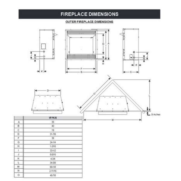 Empire Vail Premium 36 Slope Glaze Burner Vent-Free Gas Fireplace VFPA36 Specifications: |
