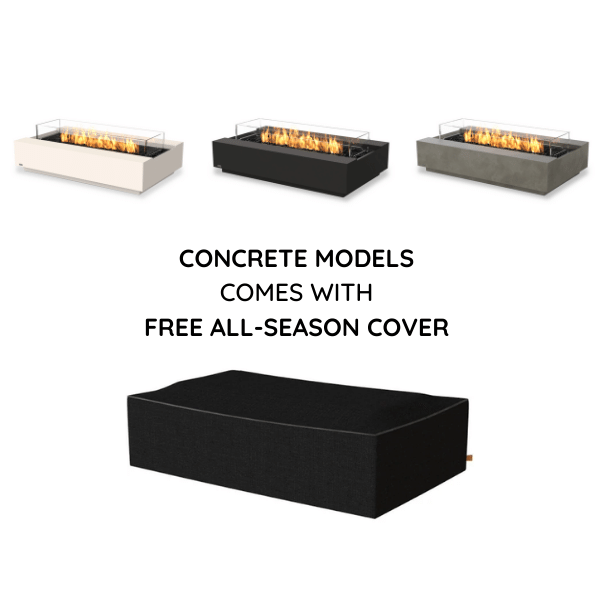 | Material | Fluid Concrete or Teak, Grade 304 Stainless Steel Burner, Toughened Glass Fire Screen |
