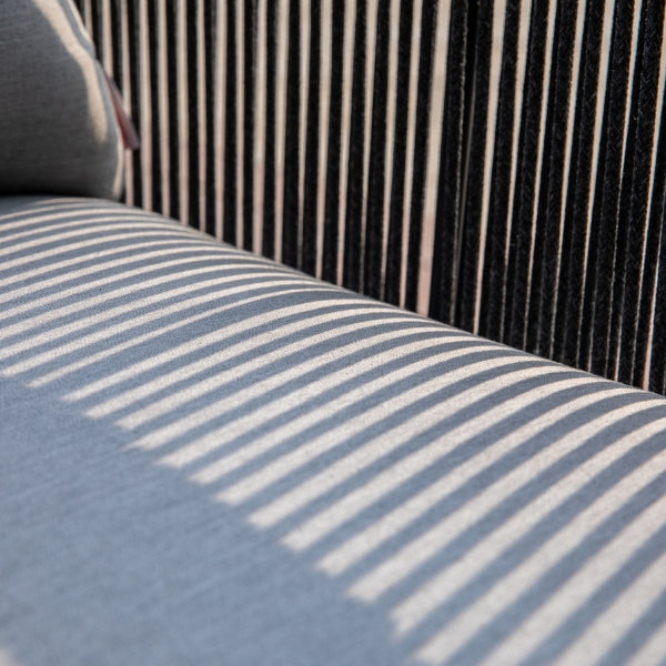 Contemporary Style: Low-slung profile and curved rope backrest offer a modern silhouette