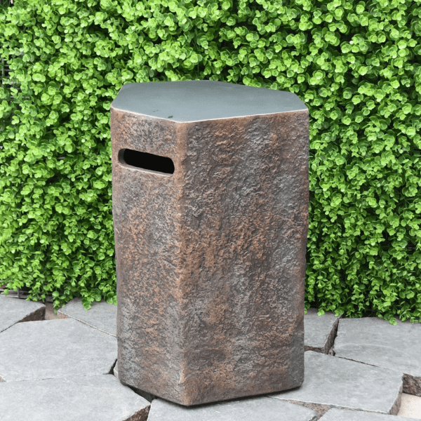 The Elementi Columbia Fire Pit Table is a beautifully crafted fire pit table that deserves an equally chic propane tank cover. The Columbia Tank Cover is a must-have accessory if you're looking for propane as your fuel source. Made of high performance cast concrete, this tank cover doubles as a side table, providing you with additional space to rest your drinks. Don't sacrifice on style with an unsightly propane tank; purchase the Columbia Tank Cover today for a cohesive outdoor oasis design.