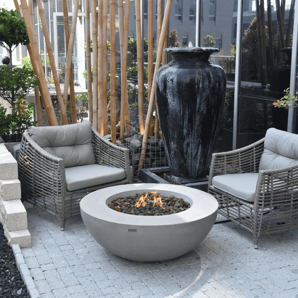 Designed with style and functionality in mind, the Elementi Lunar Round Fire Table is sure to impress your family and friends as you sit around the bowl-shaped fire table. Sitting at 42” length 42” wide and 16” tall, it is the perfect addition to your backyard oasis. Made from durable, high-performance concrete and backed by 1 year of warranty, this fire feature is sure to last for years to come. The Elementi Lunar comes available in Natural Gas or Liquid Propane configuration with a gas burner (45,000 BTUs). For your convenience, there is an electronic push-button with auto safety shut-off (AAA battery) that allows for easy ignition. Remember to pick up a stainless steel cover to protect the burner area, a windscreen to enhance your flame, and a propane tank enclosure to complete the aesthetic.