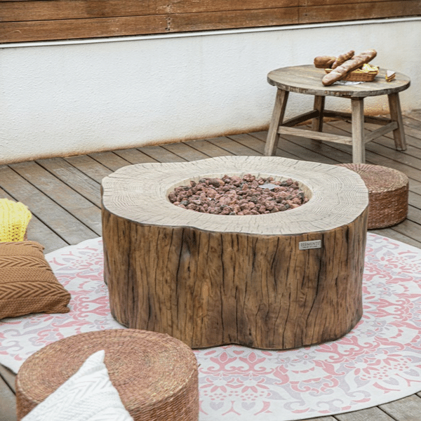 Included is lava rocks and a canvas cover that is built from waterproof fabric with PVC lining to help protect your Elementi fire table along with a drain hole that makes sure no rain will stay inside of your concrete fire pit.