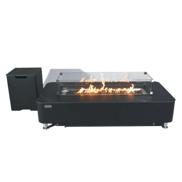 With its pure marble external shell, and a stainless steel metal frame supporting it from the inside, the Elementi Plus Valencia is immune to the elements. When choosing between the gas and propane models, the gas tank cover sold with the propane model of the Valencia Fire Table is definitely something to consider.