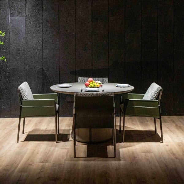 Finished in a space grey tone, the Rio Table exudes sophistication with its smooth concrete texture that complements a variety of styles. Its robust construction makes it a great option for both indoor dining rooms and outdoor patios, offering versatility and durability. The minimalist silhouette paired with the organic feel of the concrete makes it an easy fit in any space, from cozy urban apartments to spacious outdoor gardens.