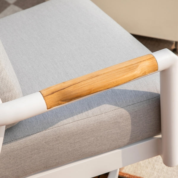 Elementi Santorini Aluminum Sofa – Outdoor Teak Arm All-Weather Patio Couch