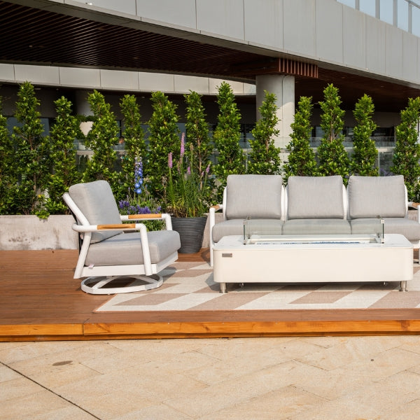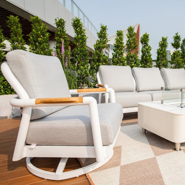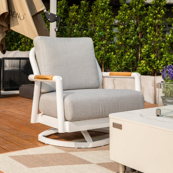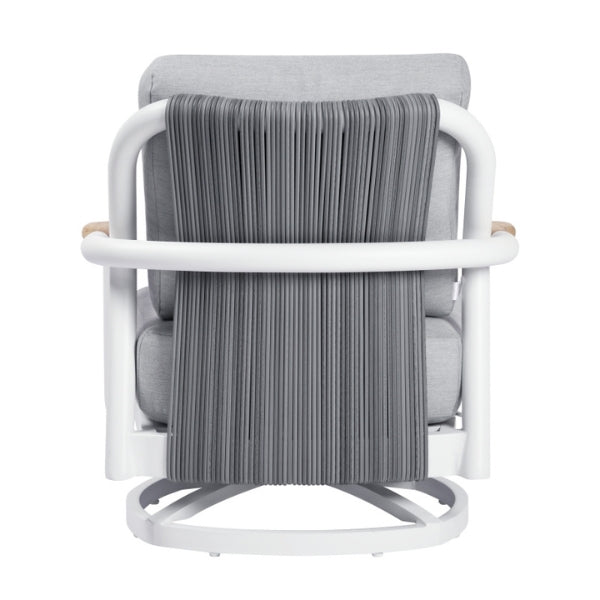 Elementi Santorini Aluminum Swivel Chair – Premium Outdoor Teak Accent Lounge Seating