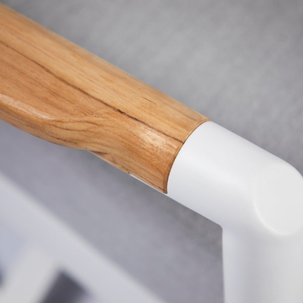 • Natural Teak Armrests: Heat-, moisture-, and pest-resistant hardwood with a golden finish that ages to a graceful silver patina