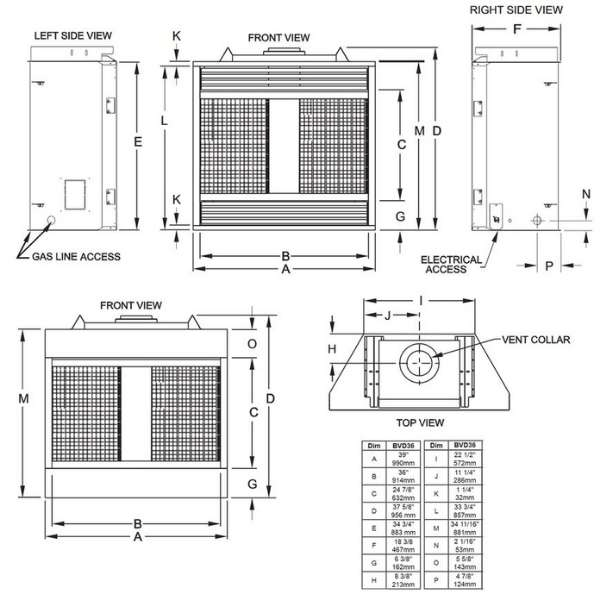 B Vent Fireplace Keystone 36" Deluxe -BVD36FP Specifications: |
