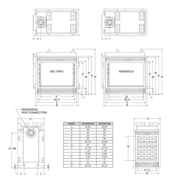Empire Tahoe Premium 36 Multi-Sided Direct Vent Gas Fireplace - DVP36 Specifications: |