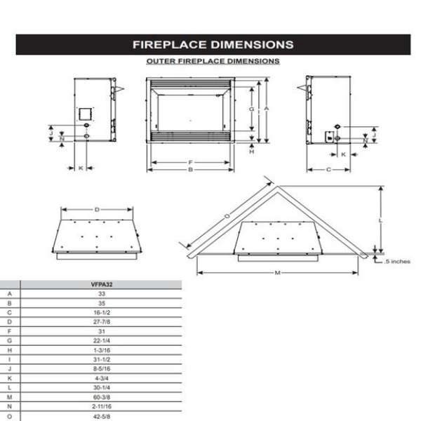 Empire 32 Inch Vail Vent Free Gas Fireplace Specifications: |