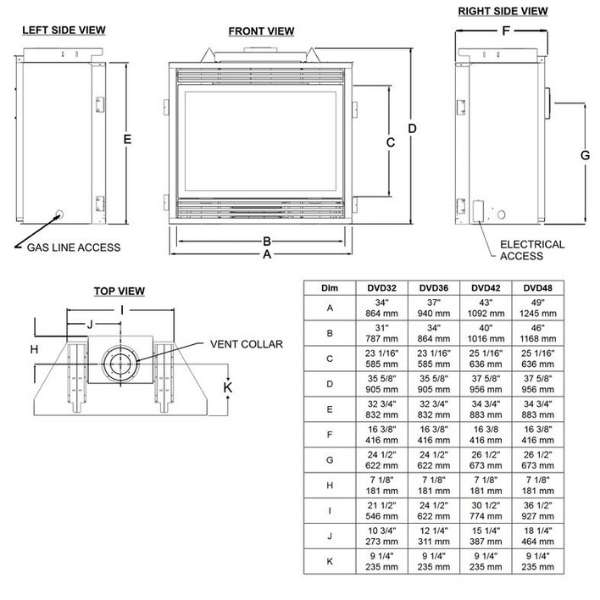 Empire 42" Tahoe Deluxe Direct Vent Gas Fireplace Specifications: |