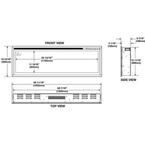 Napoleon Electric Fireplace Entice 50" Specifications: