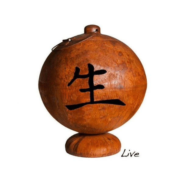 What a beautiful way to show your love for Asian design and bring some serenity to your outdoor space! The Live, Laugh, Love Fire Globe by Ohio Flame is a unique wood burning fire feature that will artfully display a triptych of Japanese kanji symbols. Best of all, the hinged access door with handle makes it easy to add logs and enjoy the mesmerizing flames.