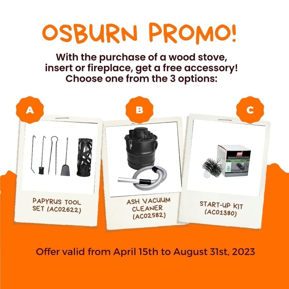 Designed to meet the needs of smaller spaces, the Osburn 1700 combines robustness and elegance to allow you to enjoy your heating experience with confidence. This unit is equipped with high-density bricks, a stainless steel heat shield added to the C-Cast firestop, a cast iron door, a built-in ash pan, a top heat deflector that redirects heat to the front of the unit, and side panels to reduce its clearances.