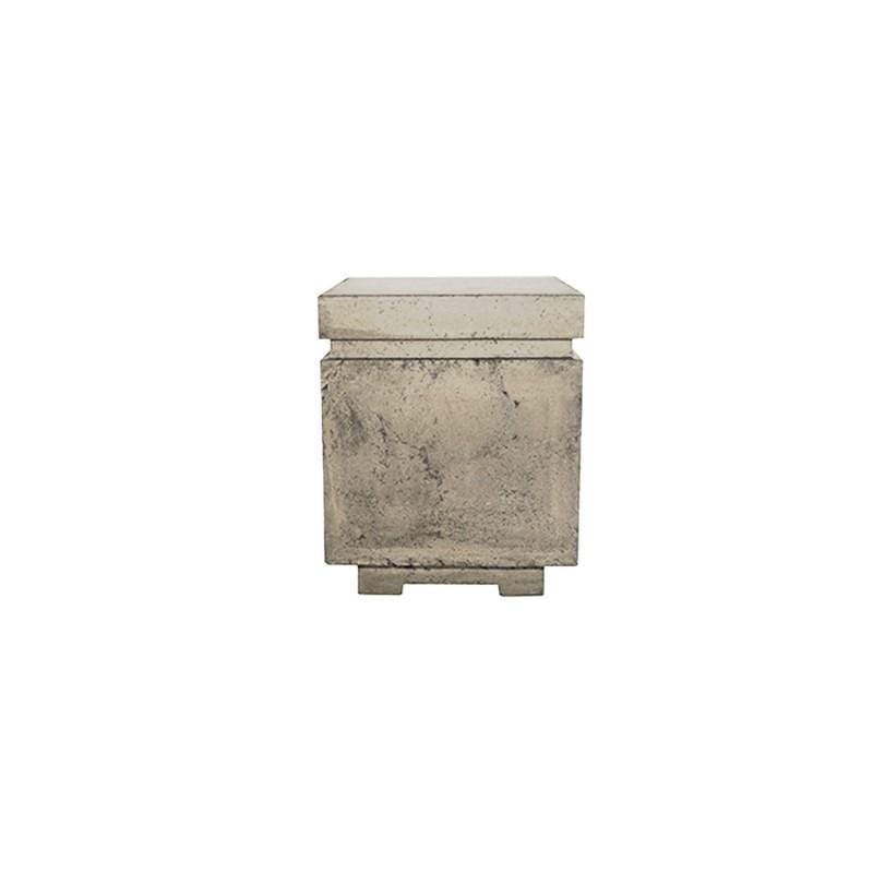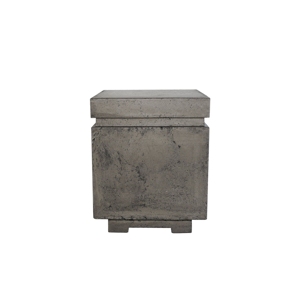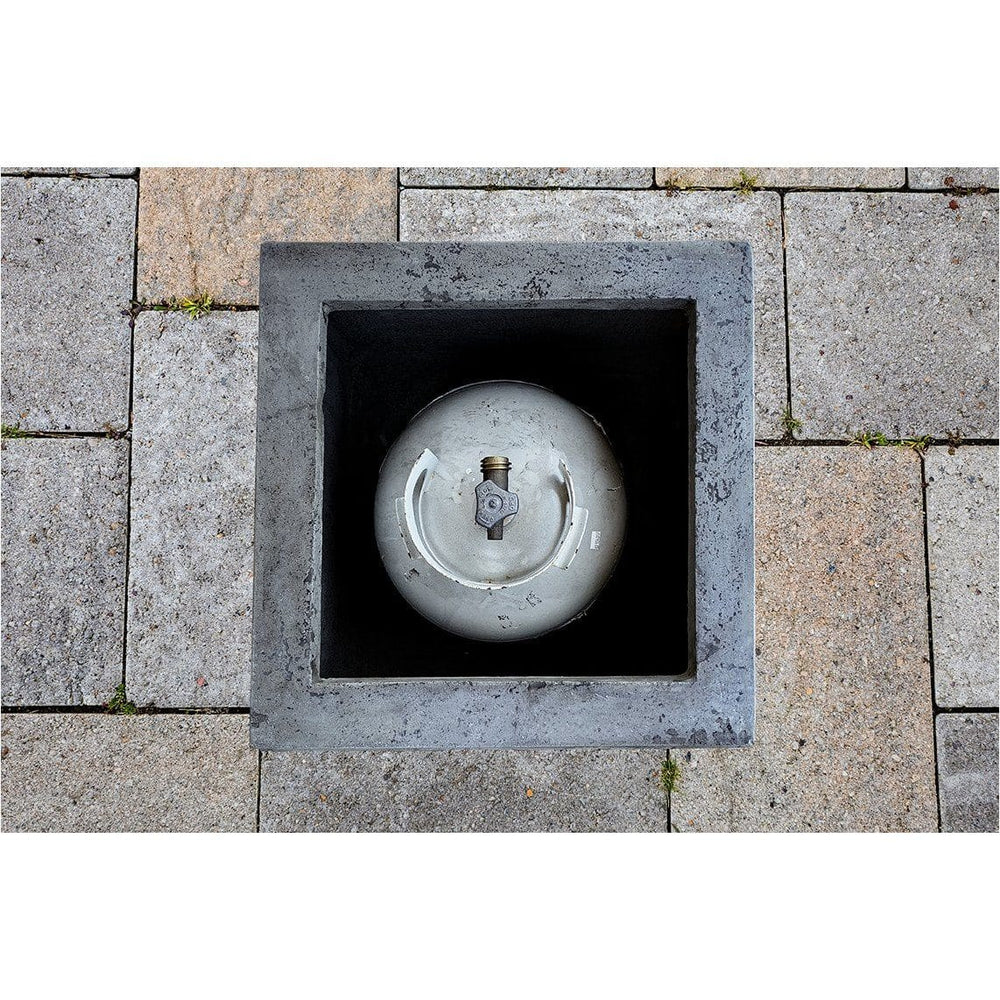 The Prism Hardscapes Tav Concrete Propane Enclosure provides both coverage and functions nicely as an end table. Each cover has been hand-crafted using our custom patina finishing process, guaranteeing a one-of-a-kind creation with subtle variation. The 20" by 20" size table provides a beautiful and functional side piece for any backyard, patio or lounging area. Pairs well with our square/rectangle fire tables.
