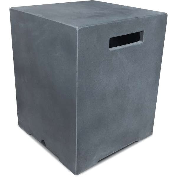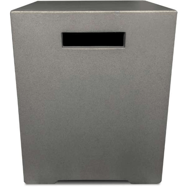 Looking for a cover that will perfectly match your Pyromania fire table? Look no further than the PyroMania Fire Hurmit Square Concrete Propane Tank Cover! Its square shape and colorfast finish make it an excellent addition to any rectangular or square Pyromania table. The slotted handle makes it easy to pick up and move around, while the high-quality fiberglass concrete construction ensures weatherproof protection year after year.