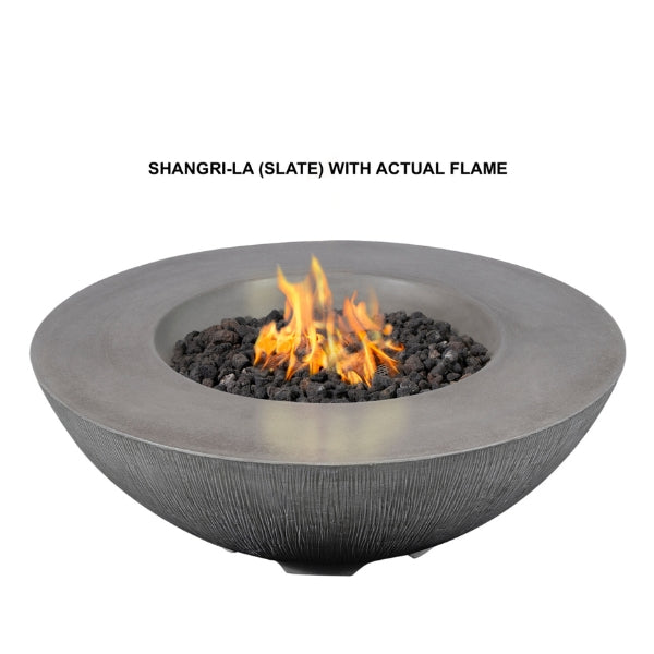 This beautiful piece is made of fiberglass-reinforced concrete and features a 304 stainless steel burner that offers up to 50,000 BTUs. The colorfast finish is designed to withstand the outdoor elements, and the raked textured sides with matte top give it a uniquely stylish look. The CSA-certified fire pit is compatible with natural gas or liquid propane (fuel sold separately), and comes with a 1-year limited warranty. So make your backyard the place to be this summer - order your PyroMania Fire Shangri-La Round Concrete Fire Pit Table today!