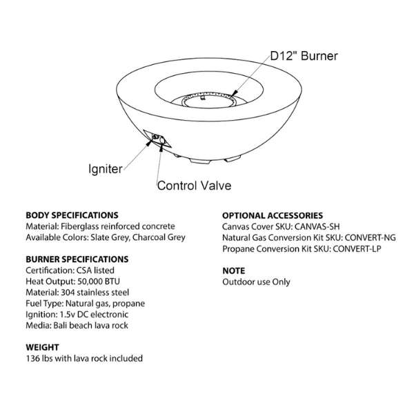 PyroMania Fire Shangri-La Natural Gas Fire Bowl Specs Sheet (PDF):