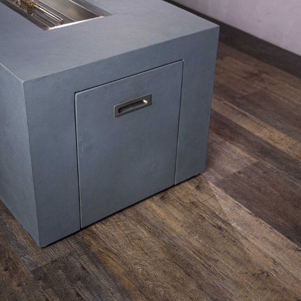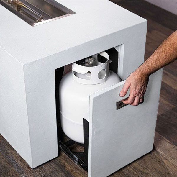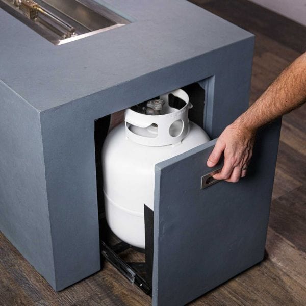 Whether you're using it in a residential or commercial space, rest assured knowing that the Beton is CSA Certified for superior safety. The fire pit's shell is crafted from glass fiber reinforced concrete (GFRC), a blend of fine glass fibers and concrete that enhances its overall strength and durability against the elements while boasting the timeless appeal of concrete. The base is equipped with a sliding door, allowing easy concealment of a standard 20lb propane tank (sold separately) while providing convenient access to your fuel source. Due to the hand-casting process by skilled artisans, each Beton fire pit showcases unique variations in color and texture, making it truly one-of-a-kind. To ensure your investment remains protected and well-maintained, a fabric cover is included.