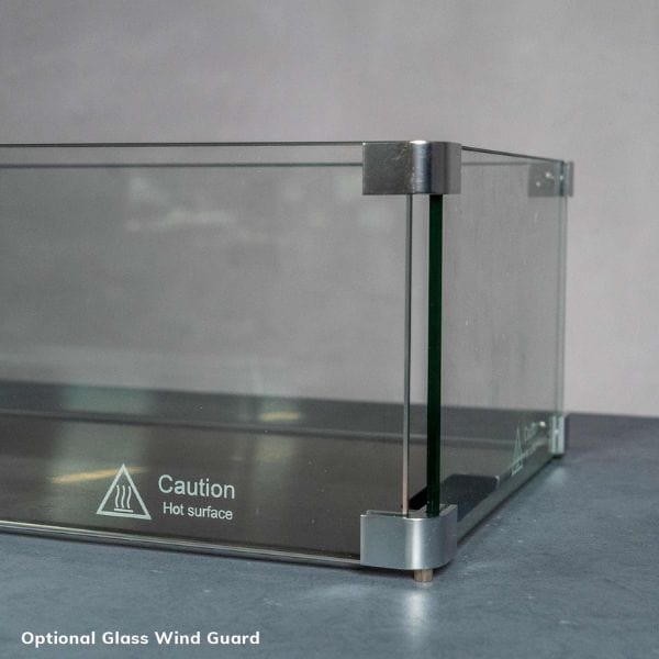 For added protection, consider upgrading with an optional stainless steel burner cover or a glass wind guard.