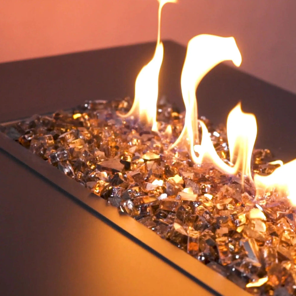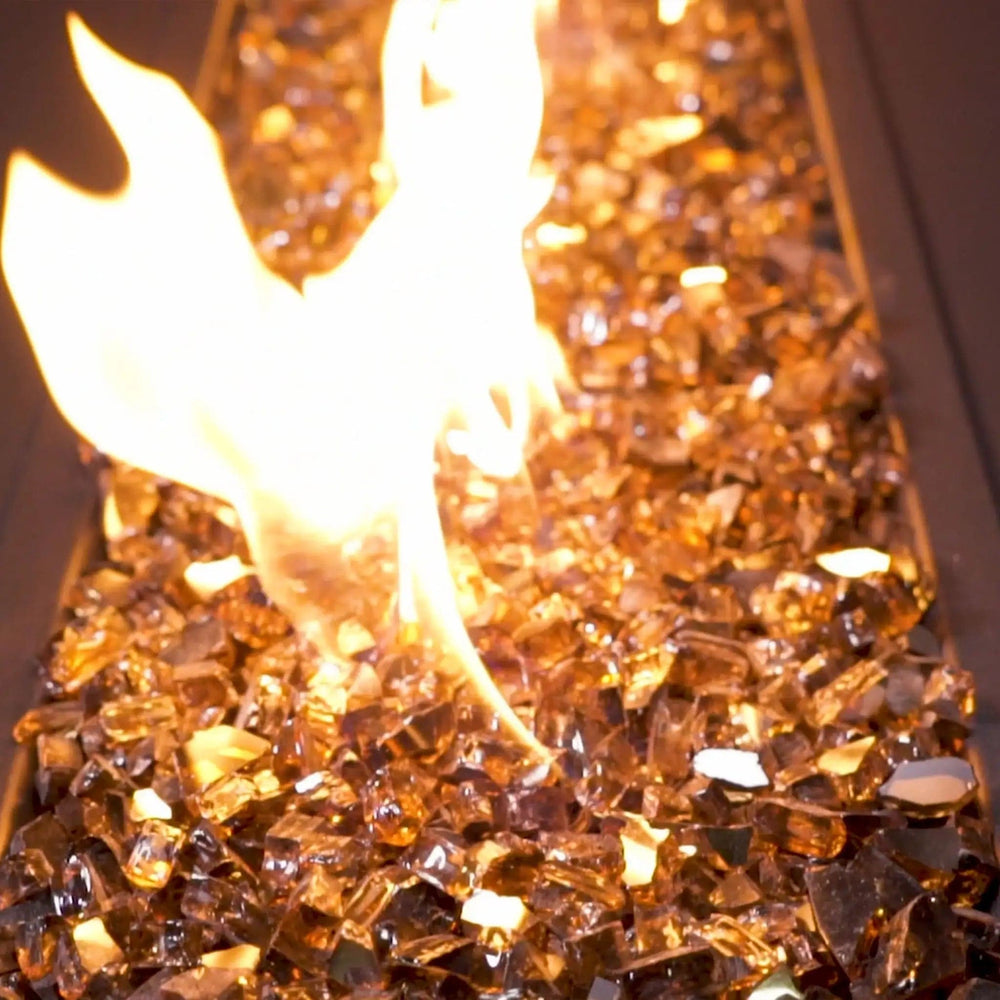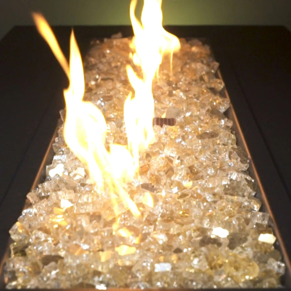 A lasting fire media solution that you'll enjoy every time you light a fire, this fire-tempered glass is a sparkling and convenient addition to your fire feature. It burns cleanly, without emitting any kind of damaging toxins or smoke, and there is never any ash or fumes to contend with when you're through. It can even withstand temperatures of up to 1,300 degrees. This fire glass is very high quality and perfect for your gas fireplace or fire pit. Enjoy your fire with a bed of glass that adds a stunning design element to your space.