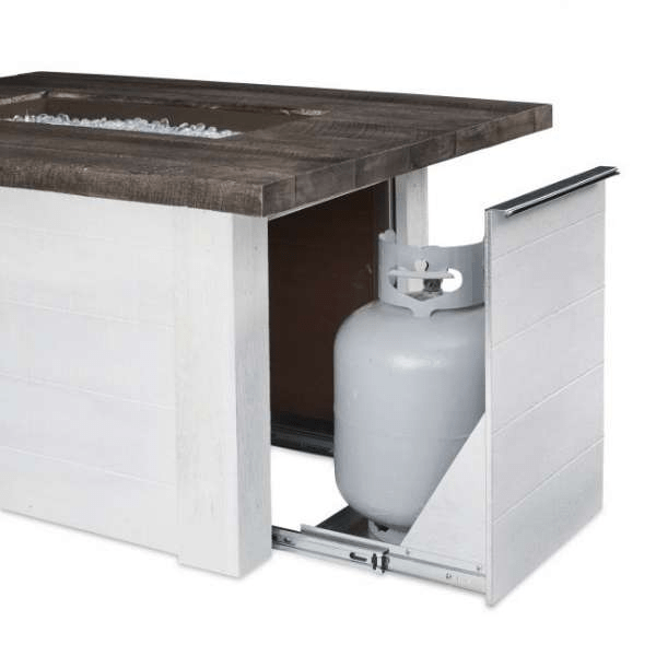 - Sliding Access Door conceals standard 20 lb. propane tank in base