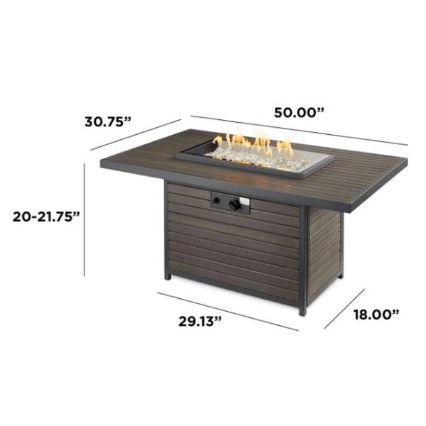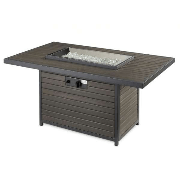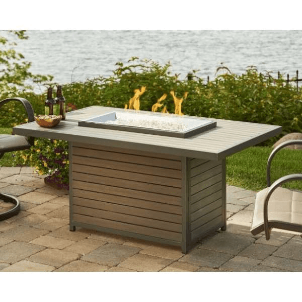 The Outdoor GreatRoom Brooks Rectangular Gas Fire Pit Table is the perfect way to elevate your outdoor space. With a composite deck top and base, this table brings a modern look to your backyard. The Crystal Fire® Plus Burner is UL listed for safety and provides elegant flames that will dazzle guests. Relax or entertain guests around this warm and inviting fire pit table.
