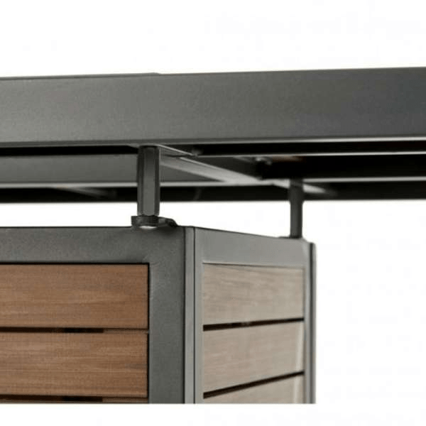 - Elevated 12” x 24” Crystal Fire® Plus Burner with clear tempered fire glass gems – 55,000 BTUs (LP/NG)