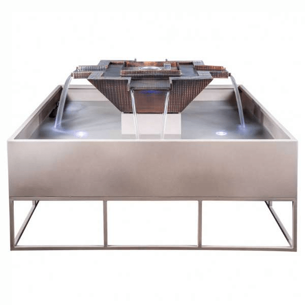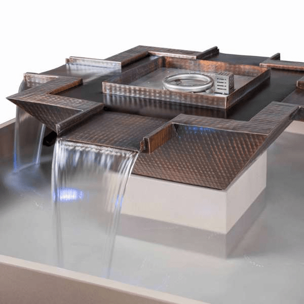 Olympian Square 4-Way Copper Fountain Firepit With Water Feature: