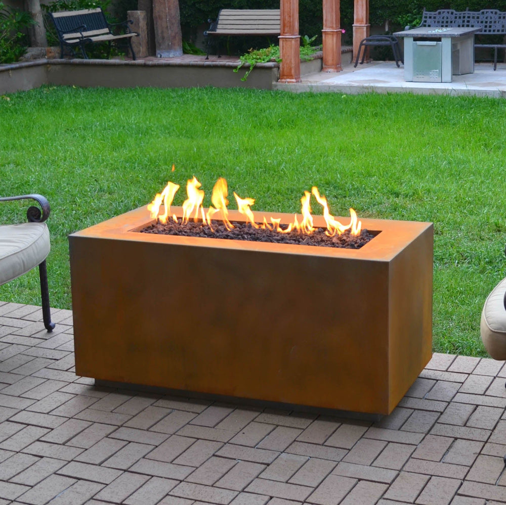 It's constructed of the highest quality metals and comes with a Stainless Steel Fire Pan, Burner, Brass Valve with Chrome Cover, Key and Hoses. The included Acces Door for Tank makes refueling a breeze, and the Lava Rock each model holds ensures long-lasting flames. Plus, it even has a 1-year warranty against manufacturing defects. Make your outdoor space even more inviting with the Outdoor Plus Pismo Metal Fire Pit!