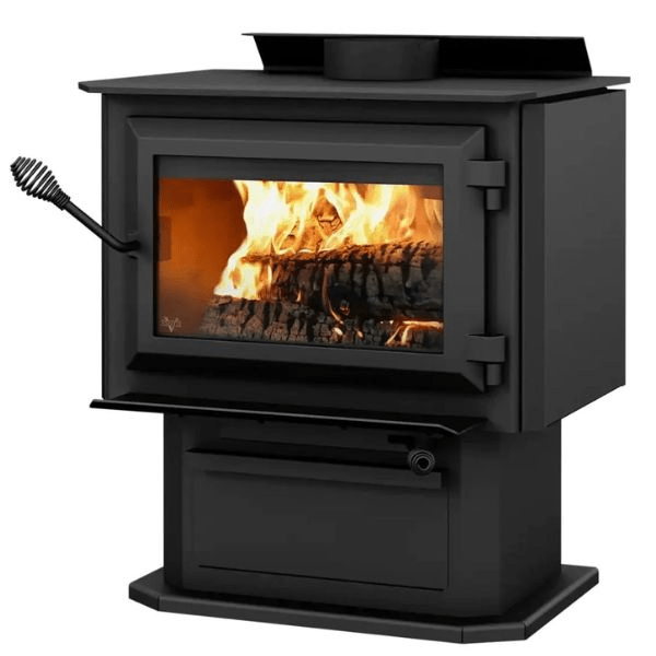 This stove is equipped with non-catalytic combustion technology that allows for optimum efficiency at 78%, topped off with a cast iron door for maximum heat retention and a top heat deflector and side panels to be sure your fire stays safe from any external elements. This medium size wood stove also comes with 1.9 cu. ft. Firebox, which gives you a great rack that can burn up to 65,000 BTU/hr of seasoned cordwood—enough power to heat up your home or office space in no time!