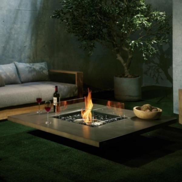 Glass fire screen - Model includes a recessed square glass fire screen, to stabilise the flame in windy conditions. An optional raised round screen is also available.